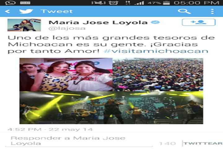 NOTICIAS 22/05/2014Michoacán afianza su promoción turística en redes socialesEn el marco del trabajo que realiza el Gobierno del Estado para la promoción turística, se llevó a cabo la activación de un esquema de difusión sobre Michoacán y sus atractivos a través de redes sociales, que en el transcurso de tres horas movieron más de 4 millones de cuentas de tuiter y fueron vistos por casi 18 millones de personas.