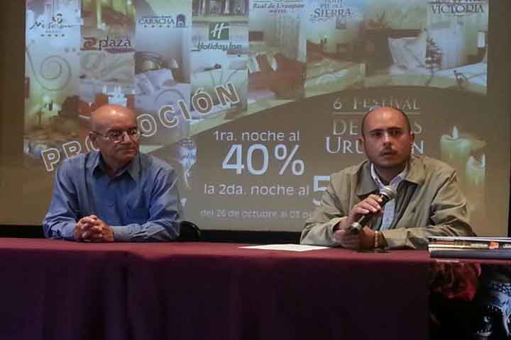 En conferencia de prensa realizada en la Secretaría de Turismo del Estado, el Secretario de Turismo de Uruapan, Ramón Guzmán Ramos y el Director del ramo en el Ayuntamiento, José Roberto Fernández Nie... Ver más...
