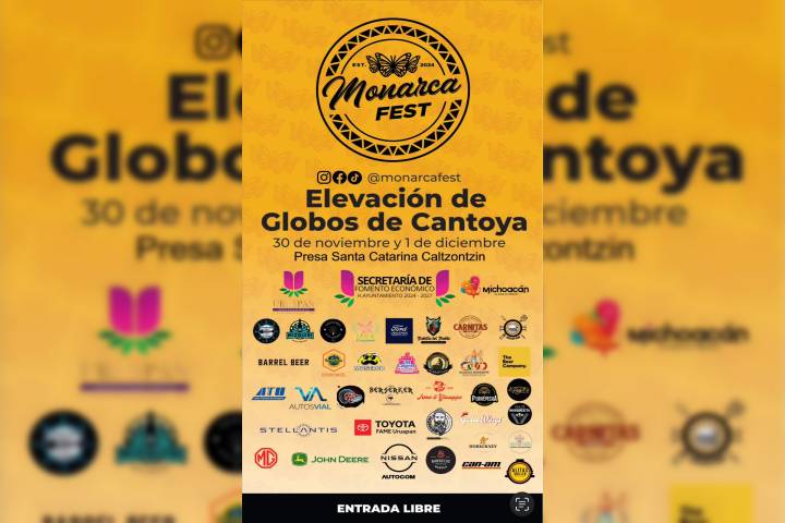 NOTICIAS 25/11/2024Monarca Fest, elevará Globos de Cantoya en UruapanUruapan abre sus puertas para recibir la primera edición del Monarca Fest. Festival Cultural, Gastronómico y Empresarial que se desarrollará el sábado 30 de noviembre y el domingo 1 de diciembre, en la Presa de Santa Catarina Caltzontzin.