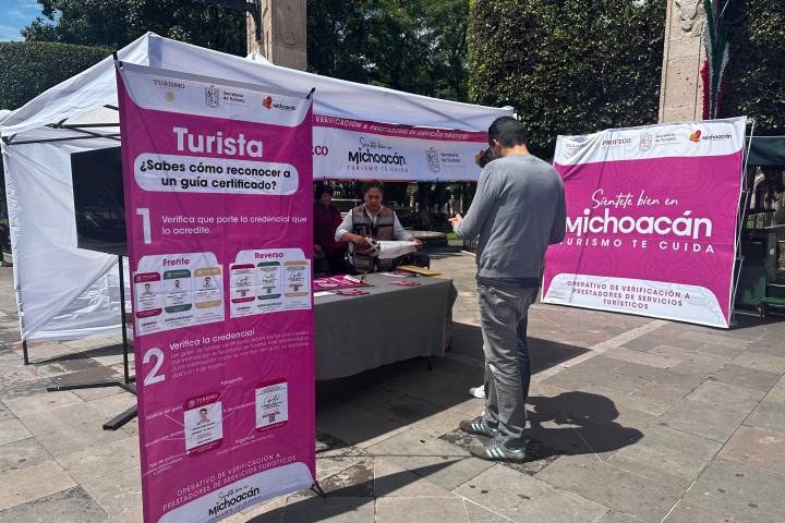 La Secretaría de Turismo de Michoacán (Sectur) inició el operativo de verificación de guías de turistas del Centro Histórico de Morelia, con la finalidad de identificar a las personas que se ostentan como expertos certificados y que ofrecen sus servicios a los visitantes. Este módulo se encuentra en la plaza de Armas, en pleno corazón del Centro Histórico, donde los turistas y visitantes se pueden acercar para dejar sus quejas y/o den...