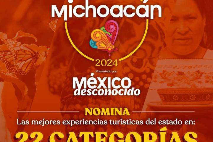 Es momento de apoyar a Michoacán y demostrar toda la riqueza que existe en el estado en el ámbito turístico, al compartir tus experiencias en temas de gastronomía, cultura, naturaleza, religión, bodas, entretenimiento, Pueblos Mágicos, hospedaje, contenido, salud y bienestar. Tienes hasta el sábado 7 de septiembre para nominar tu experiencia y travesía en la naturaleza, tu hotel favorito, el platillo tradicional que conquistó tu palad...
