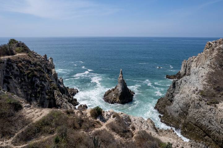 El "dedo de Dios" apunta al cielo desde esta playa de Michoacán
