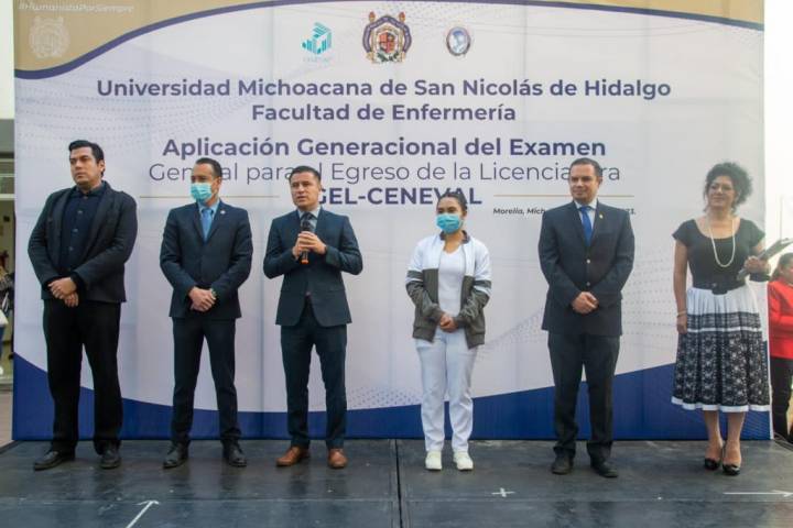 NOTICIAS 17/02/2023Enfermería de la UMSNH, con el reto de seguir siendo punta de lanza en Michoacán Las y los estudiantes son la parte central de la Universidad Michoacana de San Nicolás de Hidalgo (UMSNH), reconoció el secretario Administrativo, Javier Cervantes Rodríguez, al asistir en representación de la rectora, Yarabí Ávila González, al acto con motivo de la aplicación generacional del Examen General para el Egreso de la Licenciatura (EGEL-CENEVAL), en la Facultad de Enfermería.