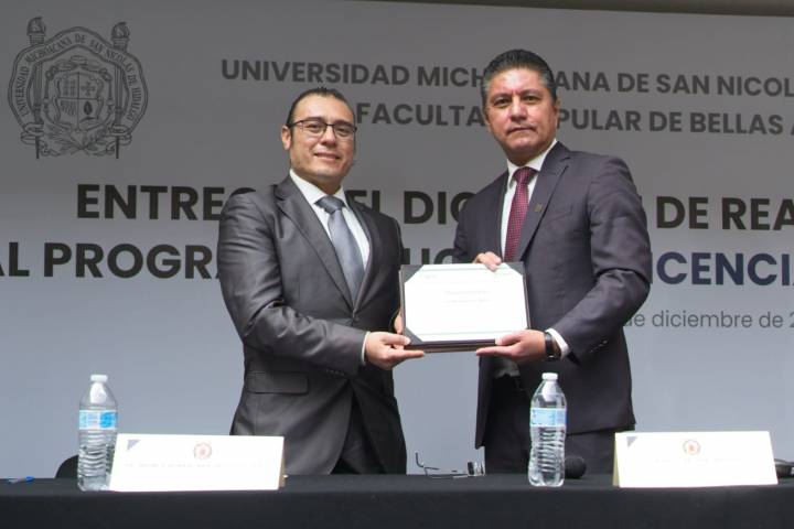 NOTICIAS 13/12/2022Recibe Raúl Cárdenas reacreditación de la licenciatura en teatro El Rector de la Universidad Michoacana de San Nicolás de Hidalgo (UMSNH), Raúl Cárdenas Navarro, recibió la reacreditación de la Licenciatura en Teatro que ofrece la Facultad Popular de Bellas Artes por haber obtenido la calidad y excelencia en la enseñanza de su programa educativo.