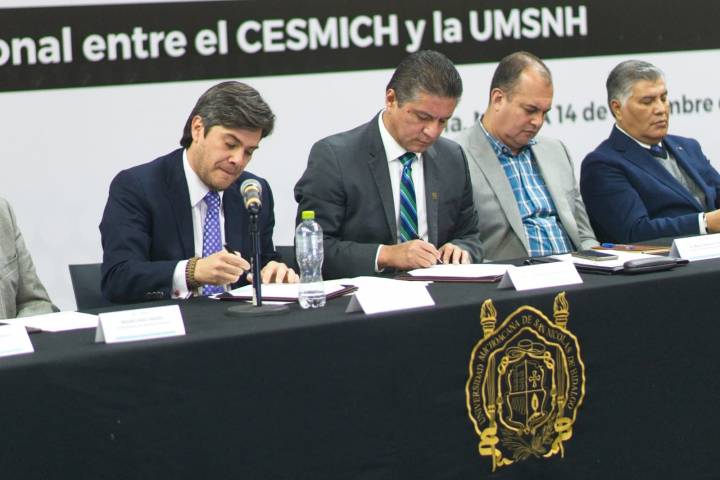NOTICIAS 14/12/2022UMSNH y CESMICH signan convenio de colaboración La Universidad Michoacana de San Nicolás de Hidalgo (UMSNH) y el Consejo Económico y Social de Michoacán (CESMICH), firman convenio de colaboración institucional en materia académica y de investigación con lo que se pretende realizar acciones para fortalecer el desarrollo socioeconómico de nuestro estado.