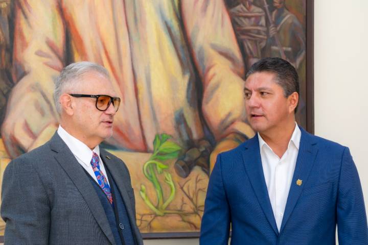 Con el objetivo de impulsar la convocatoria 2023 del Instituto Mexicano del Seguro Social, el rector de la Universidad Michoacana de San Nicolás de Hidalgo (UMSNH), Raúl Cárdenas Navarro sostuvo reunión con el encargado de la representación del IMSS en Michoacán, Javier Cabral Soto.