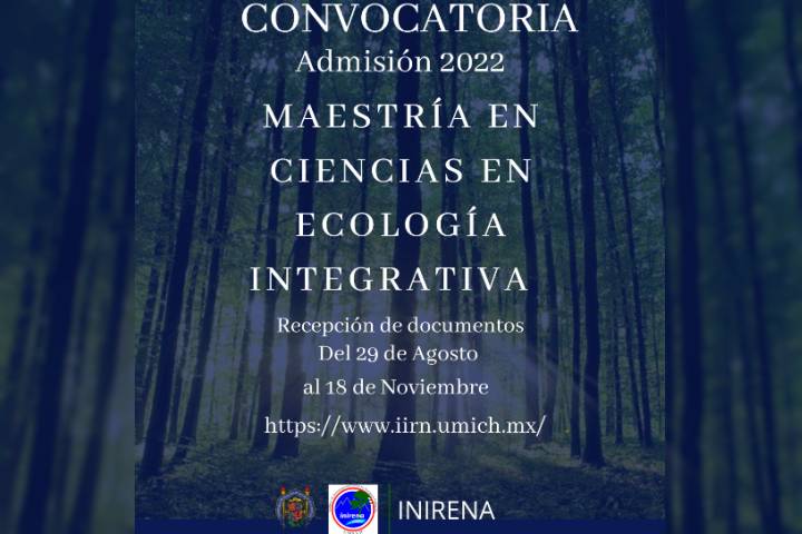 La Universidad Michoacana de San Nicolás de Hidalgo, a través del Instituto de Investigaciones sobre los Recursos Naturales (INIRENA), convoca a los egresados de las carreras de Ciencias Biológicas, Ambientales y afines, a participar en la convocatoria de ingreso a la Maestría en Ciencias en Ecología Integrativa 2022. El programa de posgrado tiene un enfoque de investigación, con el objetivo de formar recursos humanos con la capacidad de...