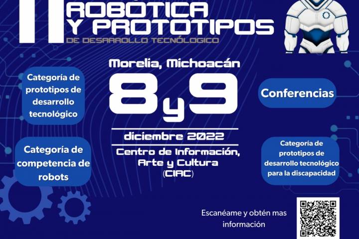 La Universidad Michoacana de San Nicolás de Hidalgo (UMSNH) convoca a estudiantes de nivel Básico (primaria, secundaria), Medio Superior (bachillerato) y Superior (licenciatura, especialidad, maestría y doctorado), de instituciones educativas públicas y privadas en el estado, a participar en el 11º Encuentro Estatal de Robótica y Prototipos de Desarrollo Tecnológico. El encuentro se llevará a cabo los días 8 y 9 de diciembre en el Cen...