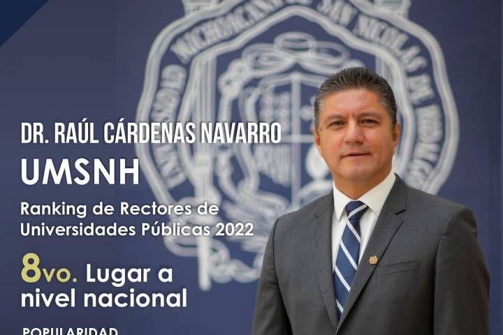 NOTICIAS 12/10/2022Rául Cárdenas en el top ten de mejores rectores de universidades públicas de MéxicoEl Rector de la Universidad Michoacana de San Nicolás de Hidalgo (UMSNH), Raúl Cárdenas Navarro, ingresó al top ten de rectores con mayor popularidad dentro de las Universidades Públicas del país.