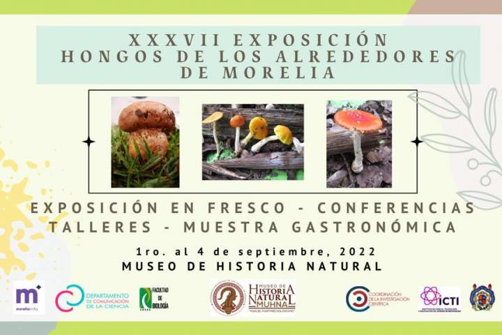 El Museo de Historia Natural (MUHNA) de la Universidad Michoacana de San Nicolás de Hidalgo (UMSNH) inaugurará este primero de septiembre la edición número XXXVII Exposición Hongos de los alrededores de Morelia, la cual estará disponible en los jardines del museo a partir de las 10:00 de la mañana, con entrada libre para la comunidad universitaria y público en general. La exposición exhibirá una extensa variedad de hongos que se rep...