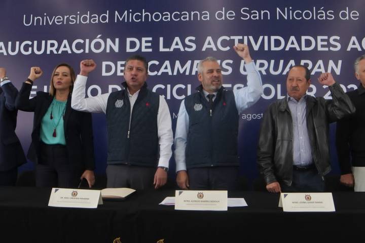 El rector de la Universidad Michoacana de San Nicolás de Hidalgo (UMSNH), Raúl Cárdenas Navarro, y el gobernador del estado, Alfredo Ramírez Bedolla, inauguraron el ciclo académico 2022-2023, poniendo en operación el campus universitario de la ciudad de Uruapan, con ello se atiende una histórica demanda social y se beneficia a los jóvenes de esta región del estado que aspiran a cursar una carrera universitaria. Tras la develación de...