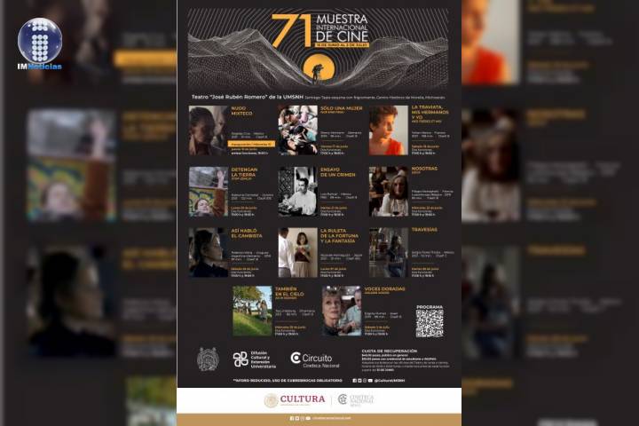 NOTICIAS 13/06/2022A través de la UMSNH, la 71 Muestra Internacional de CineLa Universidad Michoacana de San Nicolás de Hidalgo (UMSNH), informa que la Muestra Internacional de Cine de la Cineteca Nacional, en su edición 71, se llevará a cabo en las instalaciones del Teatro "José Rubén Romero", del 15 de junio al 2 de julio de 2022.