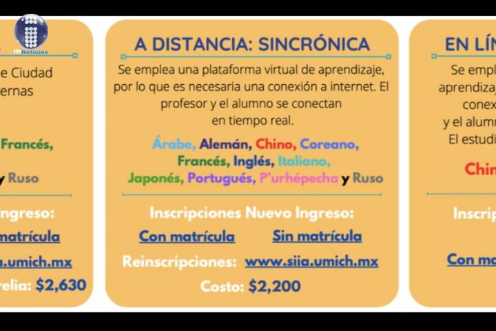 La Coordinación del Departamento de Idiomas de la Universidad Michoacana de San Nicolás de Hidalgo (UMSNH), inició los cursos correspondientes al ciclo 2022-2022, con una oferta académica en tres diferentes modalidades que permiten a los alumnos gran flexibilidad de acuerdo a sus condiciones de estudio, tipos de aprendizaje y necesidades de horario.