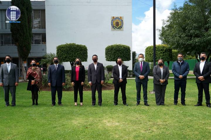 Ante Fernando Juárez Aranda, Jaime Hernández Díaz, Salvador Galván Infante, Cuauhtémoc Olmedo Ortiz y Jorge Mendoza Álvarez, presidente e integrantes... Ver más...