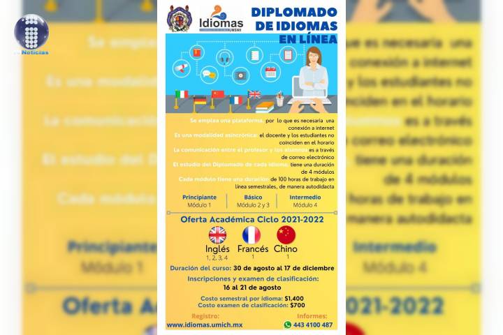 El Departamento de Idiomas de la Universidad Michoacana de San Nicolás de Hidalgo (UMSNH), inició clases en línea del idioma alemán, chino, coreano, francés, inglés, italiano, japonés, portugués, purhépecha y ruso, correspondientes al ciclo escolar 2021-2022.