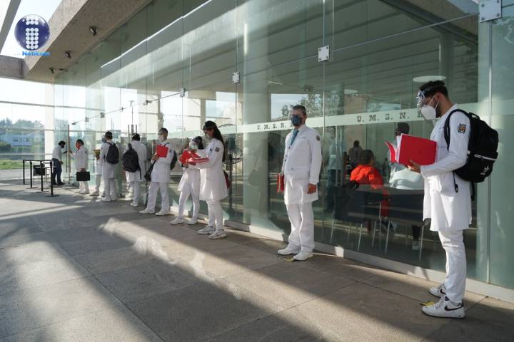 El rector de la Universidad Michoacana de San Nicolás de Hidalgo (UMSNH), Raúl Cárdenas Navarro, destacó las medidas sanitarias implementadas durante el proceso de asignación de plazas para los pasantes de la Licenciatura de Médico Cirujano y Partero de la Facultad de Ciencias Médicas y Biológicas "Dr. Ignacio Chávez". Durante el proceso de asignación de 479 espacios clínicos que se realiza por la Dirección de Vinculación y Servi...