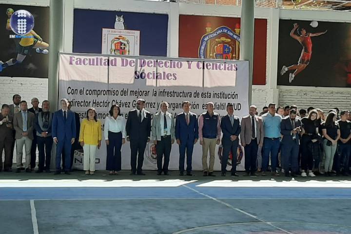 Para beneficio de la comunidad estudiantil y ante el compromiso de mejorar la infraestructura para un mejor desempeño académico, esta mañana se inauguró el techumbre de la cancha de usos múltiples en la Facultad de Derecho y Ciencias Sociales de la Universidad Michoacana de San Nicolás de Hidalgo (UMSNH).