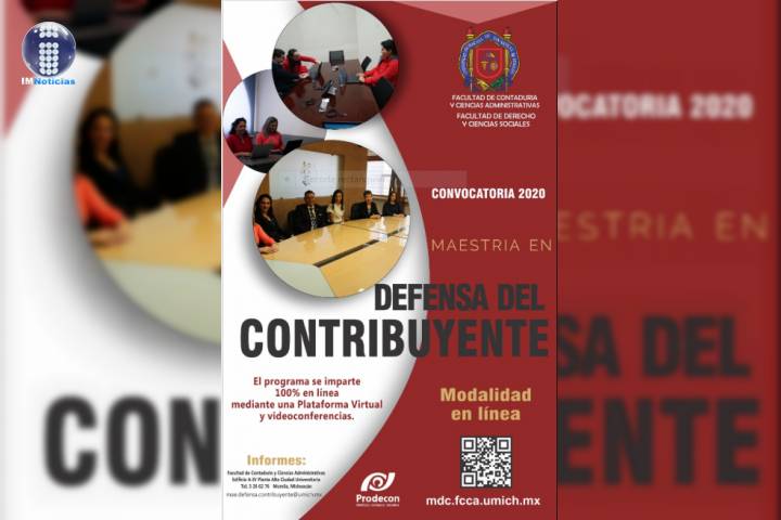 La Facultad de Contaduría y Ciencias Administrativas y la Facultad de Derecho y Ciencias Sociales de la Universidad Michoacana de San Nicolás de Hidalgo (UMSNH), convocan a la comunidad universitaria interesada en desarrollar y consolidar su formación profesional con la Maestría en Defensa del Contribuyente en la modalidad en línea.