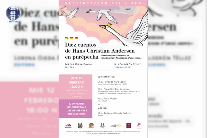 NOTICIAS 10/02/2020Presentará UMSNH cuentos de Hans Christian Andersen en PurépechaLa Universidad Michoacana de San Nicolás de Hidalgo, a través de la Facultad de Historia y el Instituto de Investigaciones Históricas, invita a la comunidad nicolaita y público en general a la presentación del libro Diez cuentos de Hans Christian Andersen en Purépecha, "Temepeni wantantskweecha Hans Christian Anderseniri p'urhe jimpo".