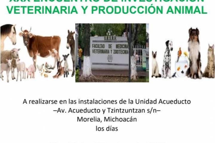 Con el propósito de difundir entre la comunidad académica y estudiantil las investigaciones realizadas por profesionales e investigadores en el área, la Facultad de Medicina Veterinaria y Zootecnia de la Universidad Michoacana de San Nicolás de Hidalgo (UMSNH), invita a la comunidad nicolaita interesada al XXX Encuentro de Investigación Veterinaria y Producción Animal.