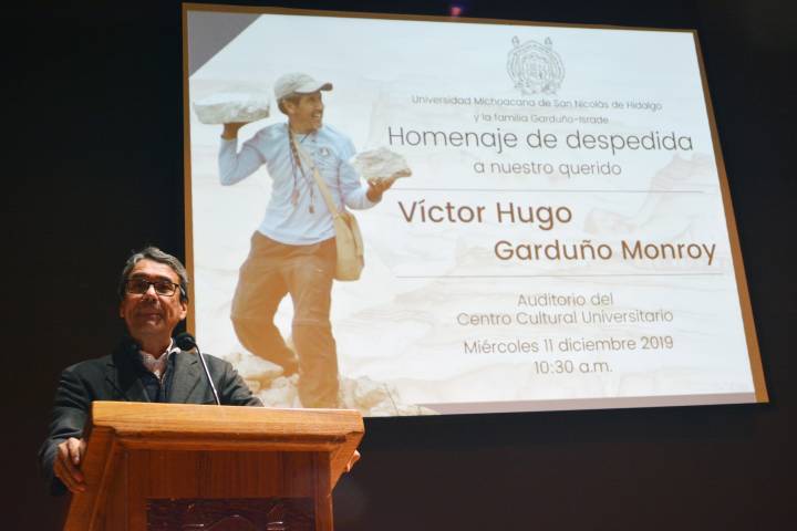 Con la presencia del rector de la Universidad Michoacana de San Nicolás de Hidalgo (UMSNH), Raúl Cárdenas Navarro, esta mañana se llevó a cabo un homenaje de despedida al recientemente fallecido investigador VÃctor Hugo Garduño Monroy.