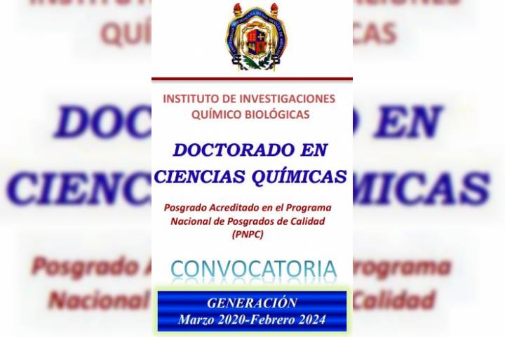 Como una opción más para los nicolaitas interesados en continuar con su preparación profesional, el Instituto de Investigaciones Químico Biológicas de la Universidad Michoacana de San Nicolás de Hidalgo (UMSNH), dio a conocer la convocatoria de ingreso a su Programa de Doctorado en Ciencias Químicas (DCQ) para la generación 2020-2024.