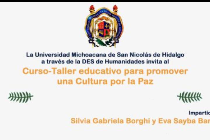 Con el objetivo de promover y fortalecer los valores, actitudes y habilidades de las personas en temas relacionados con la paz y los derechos humanos, para que a su vez, los fomenten en beneficio de su comunidad, la Universidad Michoacana de San Nicolás de Hidalgo (UMSNH) impartirá un curso-taller educativo para promover una Cultura por la Paz.