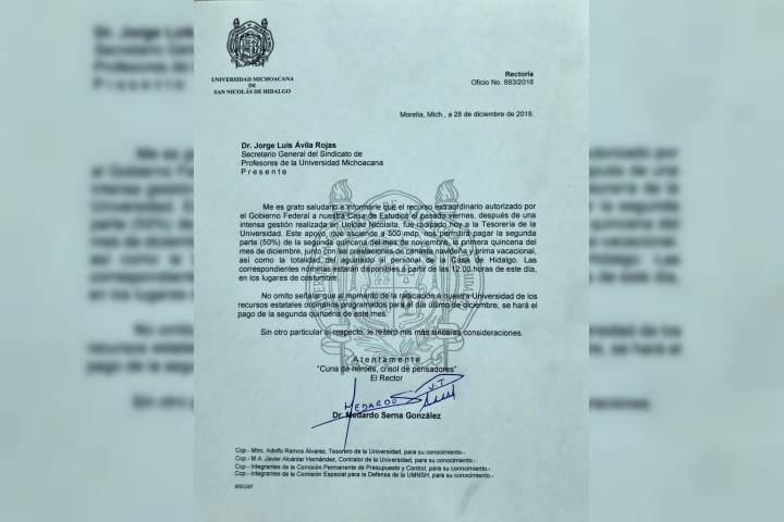 Atentamente informo al personal académico y administrativo de la Casa de Hidalgo, que este viernes les haremos los pagos referidos en los oficios adjuntos. Hago propicia esta ocasión para agradecer a toda la comunidad Nicolaita por su compromiso institucional mostrado, de manera preponderante, en esta coyuntura de insolvencia económica que vivimos en el último trimestre de este año. En especial, agradezco y reconozco ampliamente a l@s aca...