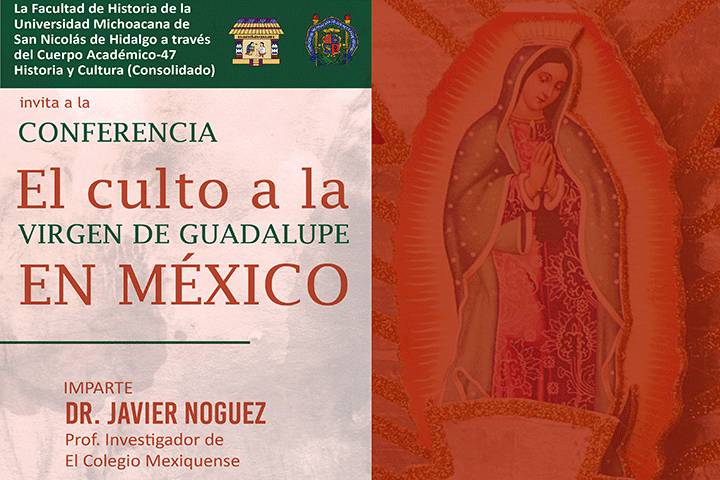 A través de la Facultad de Historia, la Universidad Michoacana de San Nicolás de Hidalgo invita a la conferencia magistral dictada por el historiador Xavier Noguez, profesor invetigador de El Colegio Mexiquense sobre el culto en nuestro país a la Virgen de Guadalupe. María Teresa Cortés Zavala, jefa de la División de Estudios de Posgrado de la Facultad de Historia, informó que los integrantes del cuerpo académico CA-47 Historia y Cultu...