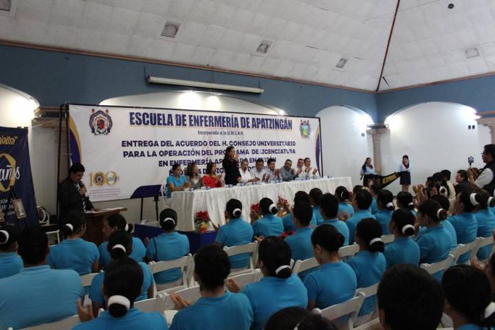 De manera oficial, quedaron institucionalizados los servicios del nivel Licenciatura en la Escuela de Enfermería de Apatzingán incorporada a la Universidad Michoacana de San Nicolás de Hidalgo, lo que marcó un histórico acontecimiento para la vida educativa, social y cultural de esta región de la Tierra Caliente del Estado, porque permitirá una mejor capacitación para los jóvenes dedicados al estudio de la Enfermería. El rector de la...