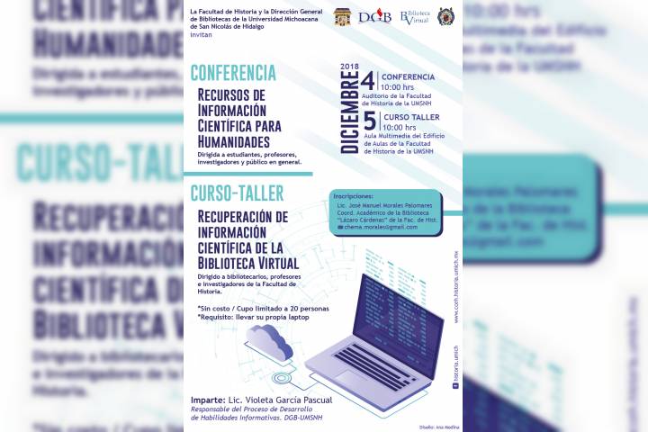 NOTICIAS 03/12/2018Dirección General de Bibliotecas de la Casa de Hidalgo da a conocer las actividades para esta semanaLa Dirección General de Bibliotecas (DGB) de la Universidad Michoacana de San Nicolás de Hidalgo, en conjunto con la Facultad de Historia invita a la comunidad universitaria y público en general, a las actividades programadas para esta semana y que ofrece a lo largo del año a fin de proporcionar servicios y recursos de información, que faciliten las funciones académicas, científicas, de difusión y extensión de la cultura.