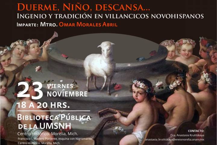 "Duerme, niño, descansa. Ingenio y tradición en villancicos novohispanos" es el título de la conferencia magistral que la Universidad Michoacana de San Nicolás de Hidalgo ofrecerá a la sociedad moreliana, a través de su Dirección General de Bibliotecas (DGB).