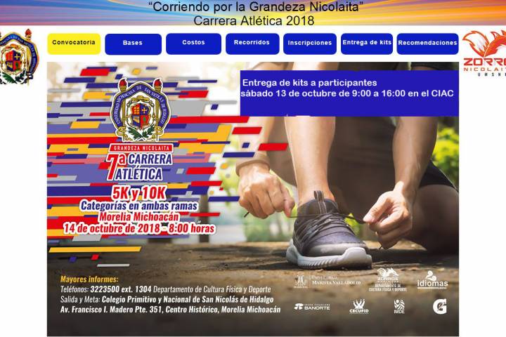 Con más de mil 400 participantes inscritos la 7ª Carrera Atlética "Grandeza Nicolaita" se llevará a cabo este domingo 14 de octubre, como parte de los festejos para conmemorar el 101 aniversario de la Universidad Michoacana de San Nicolás de Hidalgo.