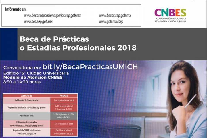 Para agilizar en los estudiantes nicolaitas el aprendizaje en campo, como un complemento de los conocimientos adquiridos en el aula, la Universidad Michoacana de San Nicolás de Hidalgo, a través de la Dirección de Vinculación y Desarrollo, convoca a los estudiantes inscritos en algún programa del área de las ingenierÃas o programas de licenciatura en general a postularse para el Programa Beca de Prácticas o EstadÃas Profesionales 2018.... Ver más...