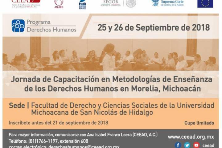 Con la intención de mantener la calidad de los programas educativos que oferta, la Universidad Michoacana de San Nicolás de Hidalgo será la sede durante este mes de septiembre de la Jornada de Capacitación sobre Metodologías de la Enseñanza de los Derechos Humanos.