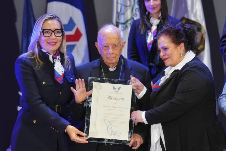 Flanqueada por el cardenal Alberto Suárez Inda y por el exgobernador del Estado, Salvador Jara Gue... Ver más...