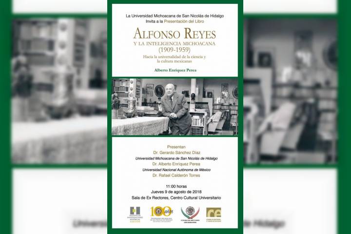 Este jueves 9 de agosto, la Universidad Michoacana de San Nicolás de Hidalgo servirá de marco para la presentación del libro "Alfonso Reyes y la inteligencia Michoacana (1909-1959). Hacia la universalidad de la ciencia y la cultura mexicanas", a cargo de su autor el doctor Alberto Enríquez Perea. La obra hace referencia a Alfonso Reyes, brillante escritor, diplomático y pensador mexicano, nacido en la ciudad de Monterrey, Nuevo León, q...