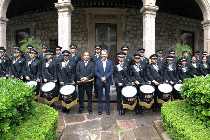 El rector de la Universidad Michoacana de San Nicolás de Hidalgo, Medardo Serna González, recibió a los integrantes de la Banda de Guerra "Zorros", luego de su nuevo campeonato nacional.