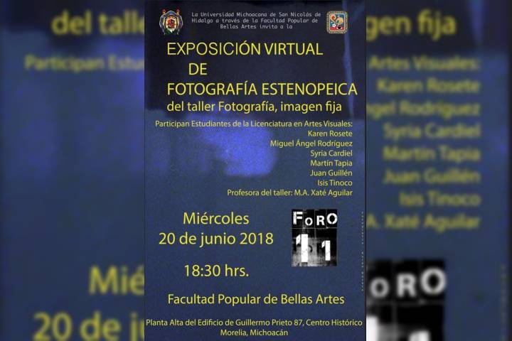 La Facultad Popular de Bellas Artes de la Universidad Michoacana de San Nicolás de Hidalgo, invita a la comunidad nicolaita y público en general a la exposición virtual de "FotografÃa estenopeica del Taller de fotografÃa, imagen fija".