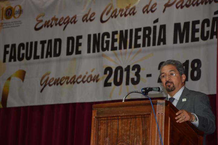 Durante el acto de entrega de carta de pasante a 80 egresados de la Generación 2013-2018 de la Facultad de Ingeniería Mecánica, e... Ver más...
