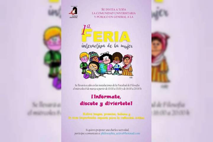La Facultad de Filosofía "Dr. Samuel Ramos" de la Universidad Michoacana de San Nicolás de Hidalgo albergará la segunda edición de la Feria Interactiva de la Mujer, organizado por primera vez en 2017 partiendo de la idea de dos alumnas de la Facultad en busca de ayudar al mundo, este año se extendió para conformar un equipo de estudiantes de ciencias Humanísticas, motivado a la difusión del feminismo y los derechos humanos de la mujer. ...