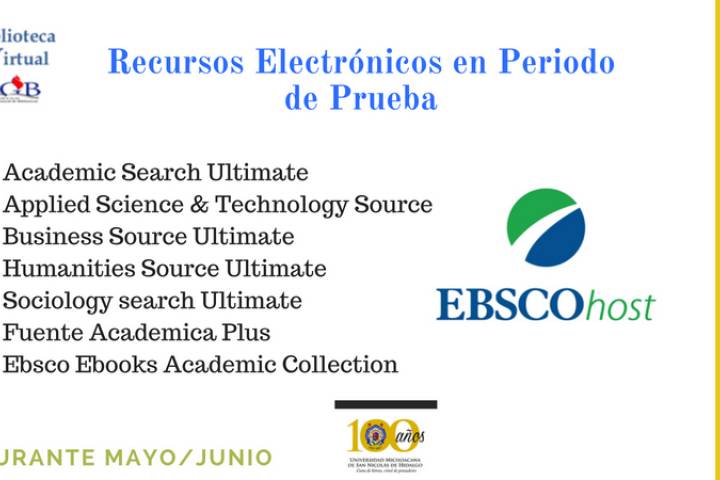 NOTICIAS 28/05/2018Dirección General de Bibliotecas, invita a nicolaitas a acceder en periodo de prueba a ABSCO HOST