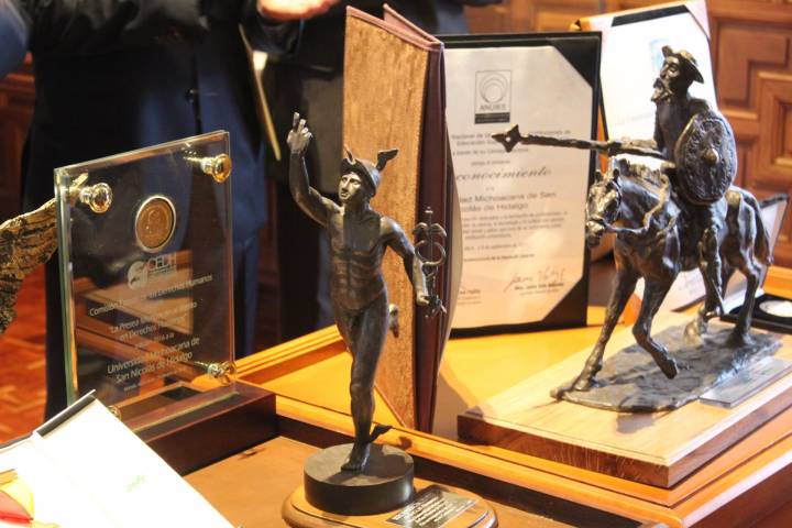 A resguardo del Primitivo y Nacional Colegio de San Nicolás de Hidalgo, quedaron las preseas y condecoraciones entregados a la Universidad Michoacana en ocasión de sus 100 años como la primera institución de educación superior de México y de América Latina.