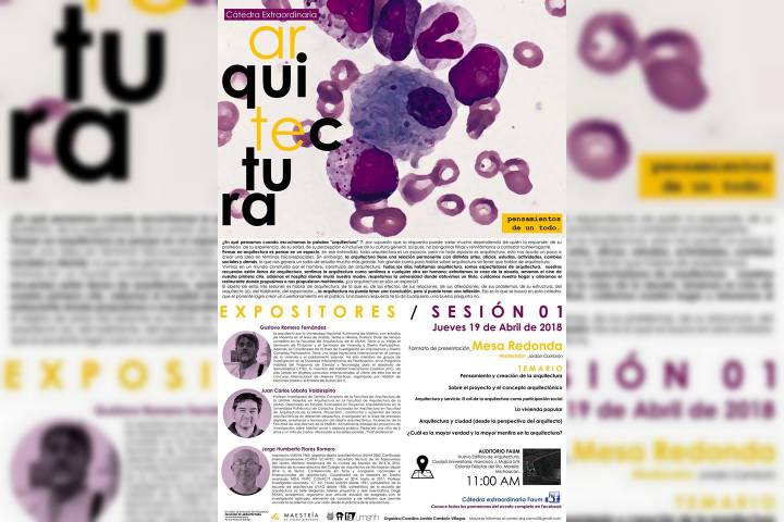Dado que vivimos en un mundo lleno de arquitectura, construido por el hombre, donde todos los dÃas habitamos y somos espectadores de arquitectura, a iniciativa estudiantil y con el apoyo de la coordinación de la MaestrÃa en Diseño Avanzado de la Facultad de Arquitectura dependiente de la Universidad Michoacana, este jueves 19 de abril dará inicio la Cátedra Extraordinaria Arquitectura, denominada "Pensamientos de un todo".