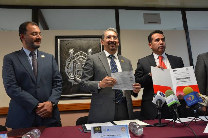El rector de la Máxima Casa de Estudios de Michoacán, Medardo Serna González, y el alcalde de Sahuayo, Rodrigo Sánchez Zepeda, signaron el Convenio a travé... Ver más...