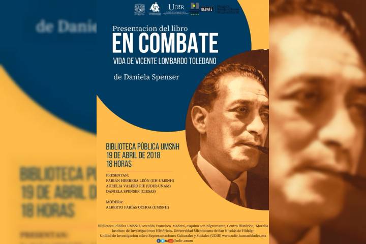 Con una obra de investigación y análisis crítico de los procesos históricos en los que se vio envuelta una figura que refleja la complejidad del México posrevolucionario, el Instituto de Investigaciones Históricas (IIH) de la Universidad Michoacana de San Nicolás de Hidalgo invita a la comunidad universitaria y público en general a la presentación del libro "En combate, vida de Vicente Lombardo Toledano".