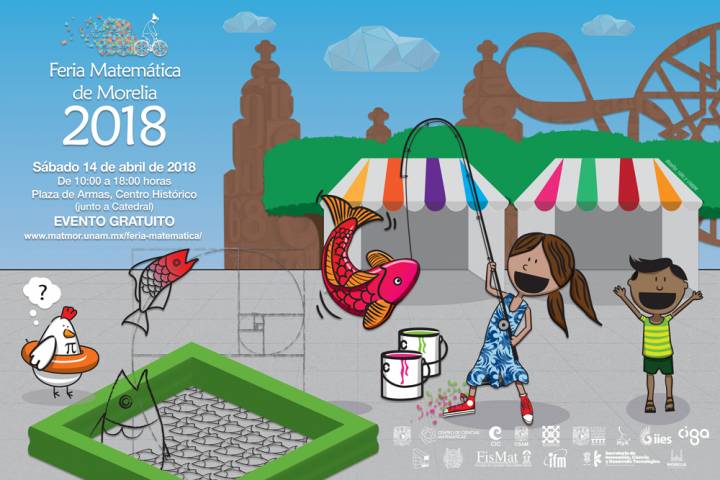 El Centro de Ciencias Matemáticas (CCM) de la UNAM Campus Morelia, invita a todos los niños, niñas, jóvenes, adultos y adultos mayores a que asistan este sábado 14 de abril de 2018, a la sexta edición de la Feria Matemática de Morelia, en la Plaza de Armas del Centro Histórico de Morelia, en un horario de 10:00 a 18:00 horas.