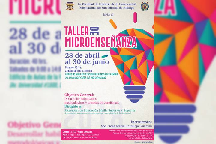 Con el objetivo de dar continuidad a las labores de capacitación para profesores, la Universidad Michoacana de San Nicolás de Hidalgo a través de su Facultad de Historia, ofrecerá un taller dirigido a desarrollar habilidades metodológicas y técnicas de enseñanza.