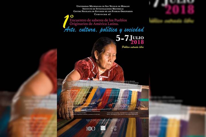 El Instituto de Investigaciones Históricas de la Universidad Michoacana de San Nicolás de Hidalgo, convoca a participar en el "Primer encuentro de saberes de los pueblos originarios de América Latina. Arte, cultura, polÃtica y sociedad" a celebrarse del 5 al 7 de julio de 2018.