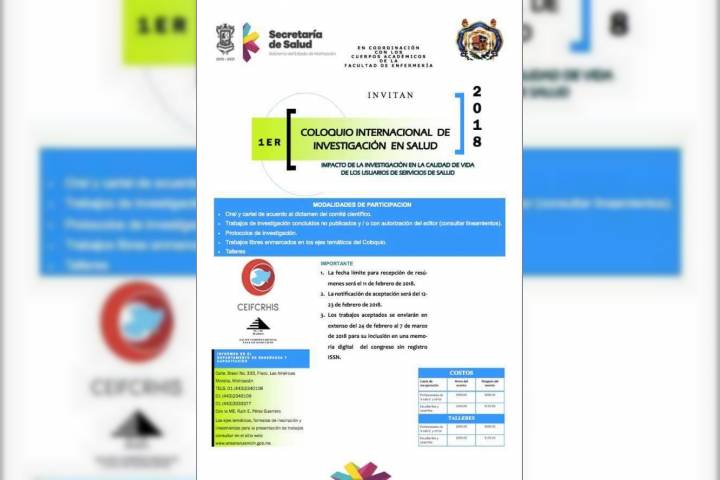 NOTICIAS 02/02/2018UMSNH y Secretaría de Salud invitan a coloquio de investigaciónCon la finalidad de medir el impacto de la investigación en la calidad de vida de los usuarios de servicios de salud, los cuerpos académicos de la Facultad de Enfermería de la Universidad Michoacana de San Nicolás de Hidalgo en coordinación con la Secretaría de Salud en el Estado, convocan al Primer Coloquio Internacional de Investigación en Salud 2018.